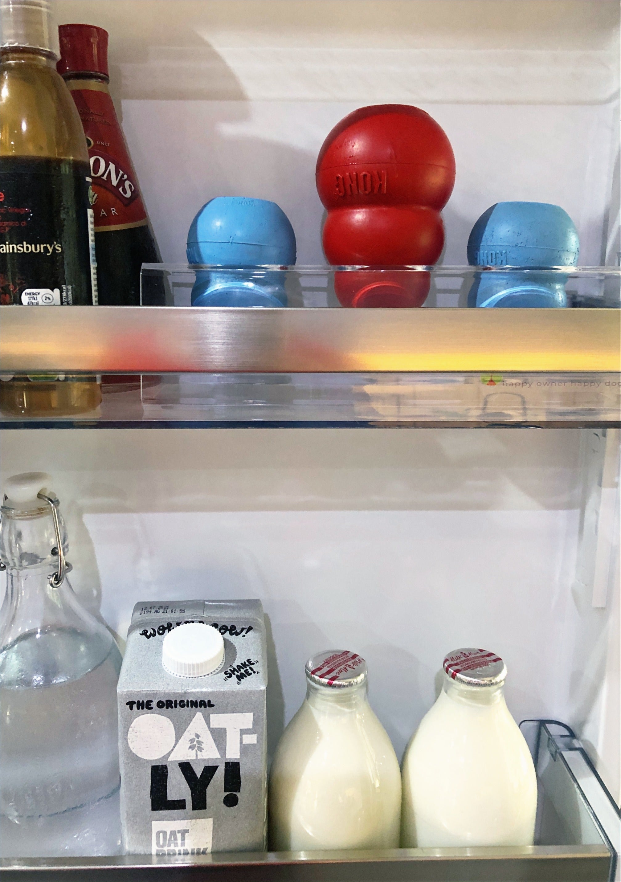 Securely hold your dog enrichment toys whilst you fill and store them.
